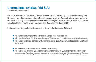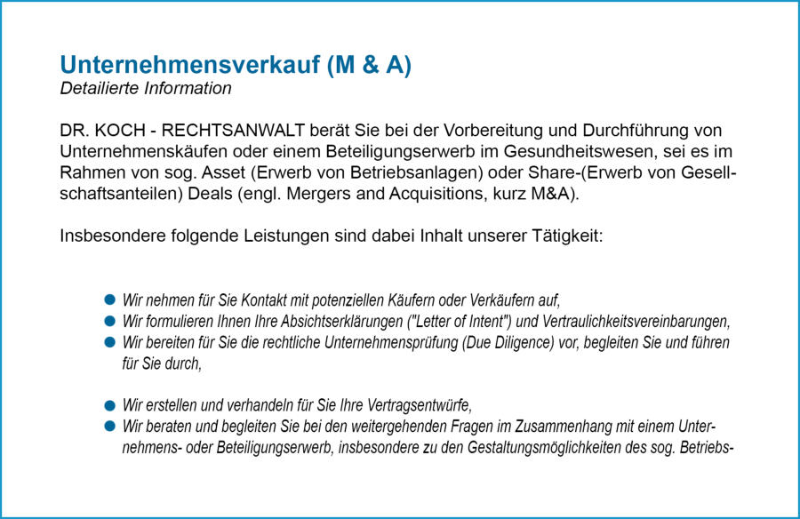 Wir haben uns seit über 20 Jahren darauf spezialisiert, Sie bei der Veräußerung Ihres Unternehmens, seiner umwandlungsrechtlichen Restrukturierung oder von Ausgliederungen zu beraten.